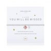 A silver plated, elasticated bracelet with a round silver jewelled charm. All Joma bracelets are complete with a white card and include a sentimental phrase. These bracelets make a perfect gift for special occasions.