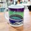 A lovely racing green Angel of the North Mug from Northern Sky Design. A porcelain mug which has been printed with a fantastic pen and ink drawing of the Angel