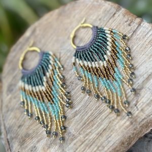 A stunning pair of colourful Beaded Hoops Earrings Blue Tones.