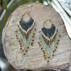 A stunning pair of colourful Beaded Hoops Earrings Blue Tones.