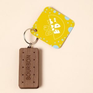 A realistic Bourbon biscuit wooden keyring