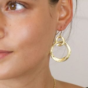Gorgeous brushed gold linked hoop necklace with silver bead details