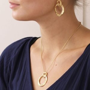 Gorgeous brushed gold linked hoop necklace with silver bead details