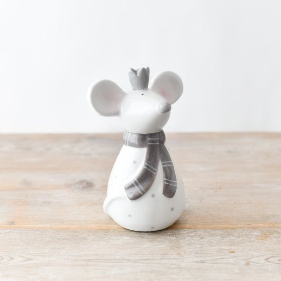 Transform your Christmas living space with the whimsical charm of our 15 cm white and grey ceramic mouse, crowned with elegance and wrapped in a cozy scarf. This decorative piece effortlessly adds character to your home, showcasing a unique blend of playful design and sophisticated craftsmanship. Its neutral tones complement a variety of interior styles, making it an ideal addition to your mantelpiece, shelves, or display cabinets.