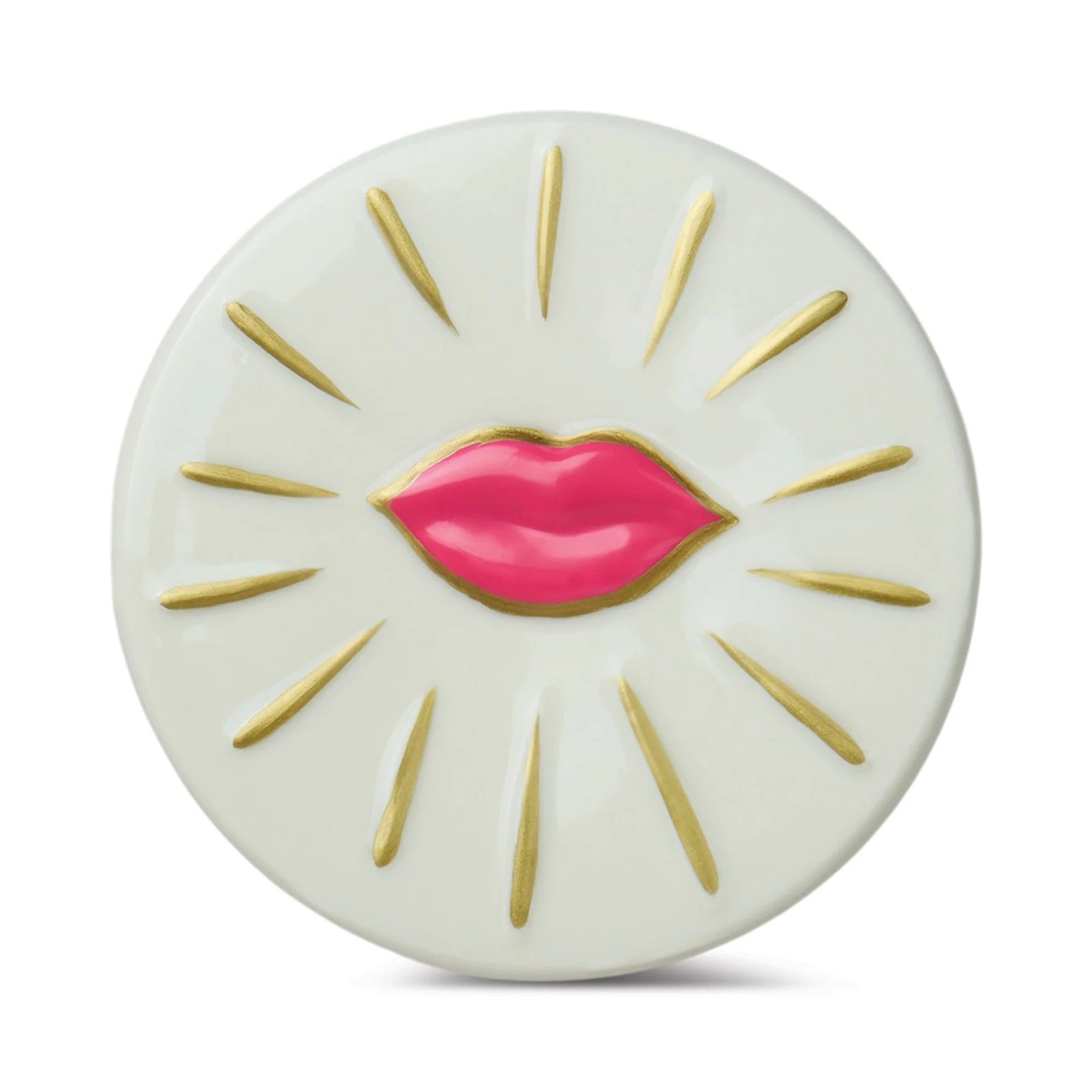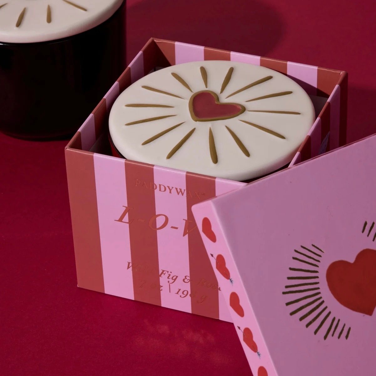 The Charmed 8oz Glass Candle with Lid offers Luck, love, and a little bit of magic. This new collection brings whimsy and wonder with every design. Each bold glass candle is topped with a ceramic lid featuring a hand-painted charm, surrounded by gold rays.