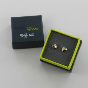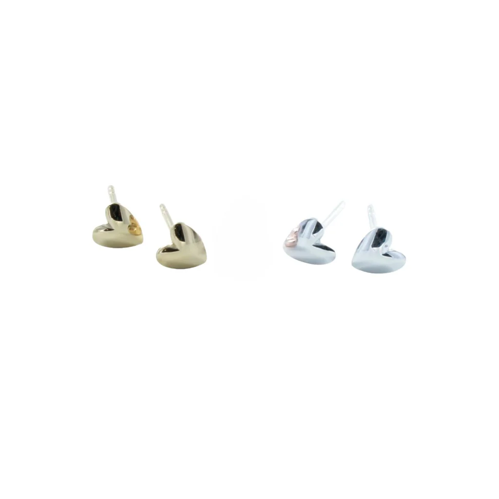 A classic pair of simple heart studs in a high shine finish of either sterling silver or 18ct gold plated silver