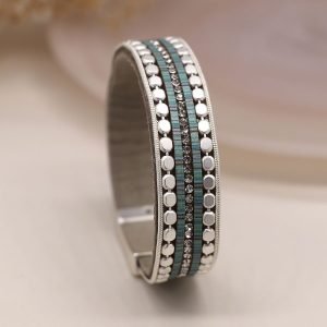Dusky Grey, Aqua and Silver Leather Bracelet