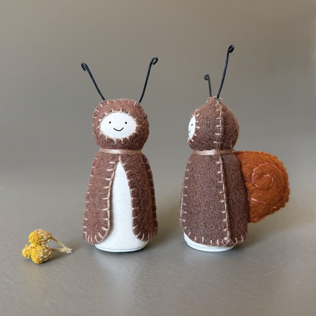Super cute autumal felt figures. It’s a difficult choice, snail with his little shell, bee or bushy tailed squirrel?