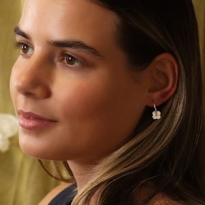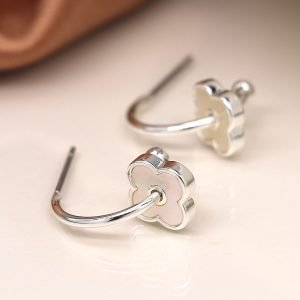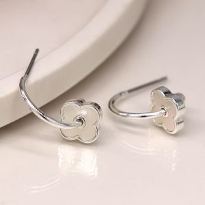 Silver plated c-hoop stud earrings with pearlescent inset quatrefoil