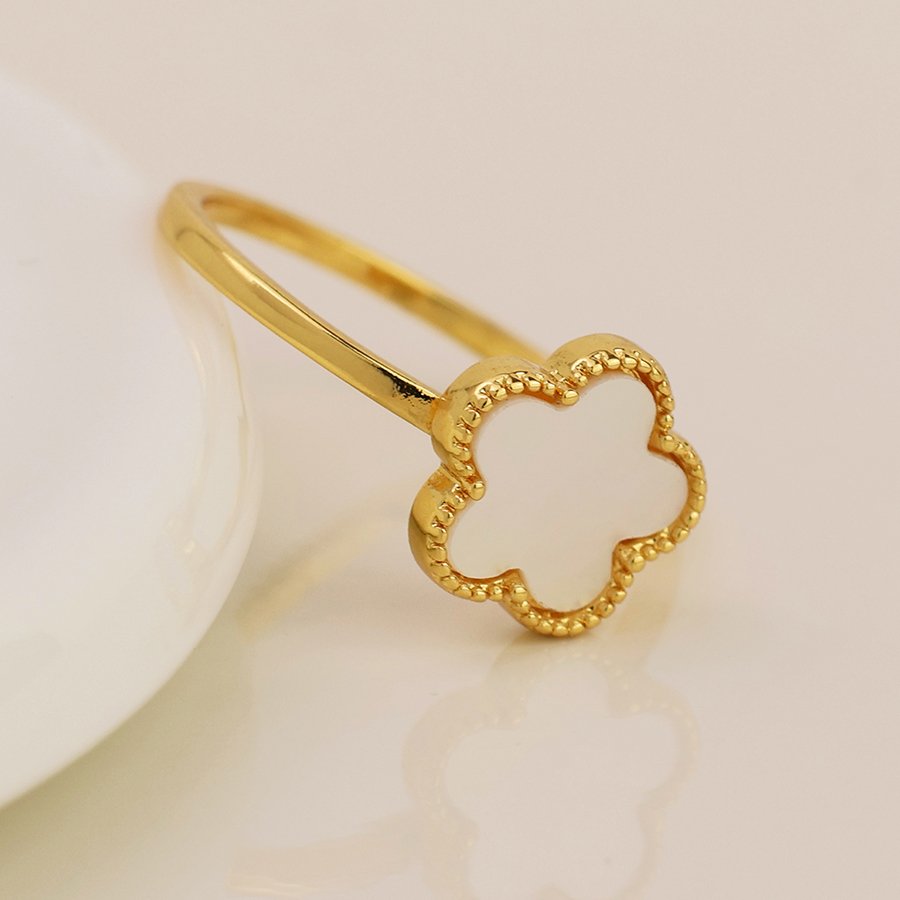 Symbolizing luck and beauty, this gold clover motif ring is a stunning accessory that pairs effortlessly with both casual and dressy outfits.Featuring a delicate clover-shaped design accented with a lustrous mother-of-pearl center, this ring radiates sophistication and good fortune