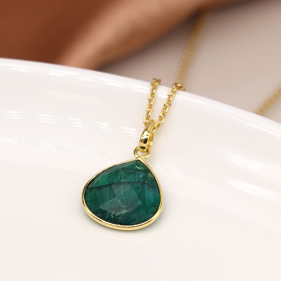 Design: Emerald teardrop pendant on a fine gold chain
