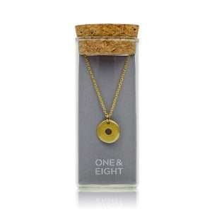 A beautiful freeform gold disc, suspended on a gold chain from our range of jewellery by One & Eight