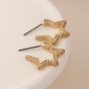 A gorgeous pair of Golden textured star hoop earrings complimenting any outfit.