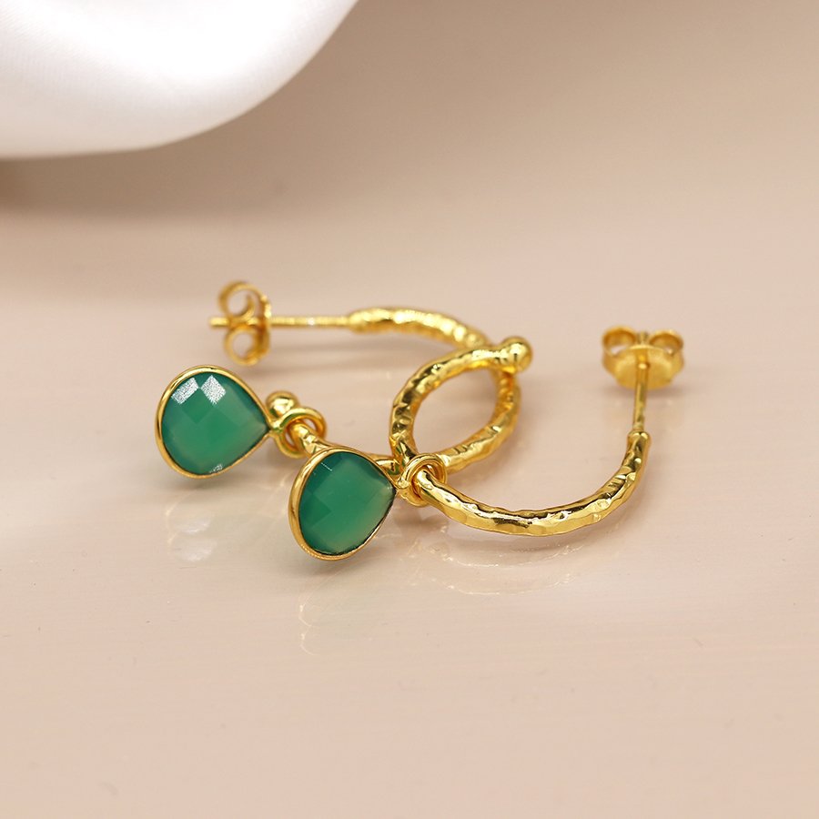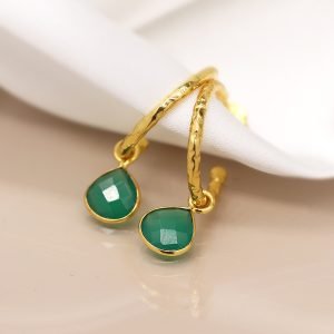 From PoM’s Aureus luxury jewellery collection, these 14 Carat gold plated hoops have a striking green onyx drop and come packaged in a silk pouch, making them a perfect gift.