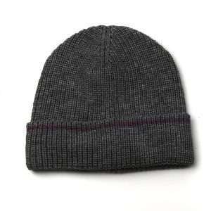 A fab Grey Ribbed Men’s Hat with Burgundy Border from Peace of Mind. A cool knitted beanie hat with folded edge which also has a matching scarf.