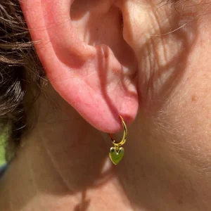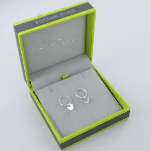 A classic sleeper style earring with a heart charm drop in a striking high shine finish. A perfect gift for a teenager or young adult, these earrings look great layered with other piercings and come in a lovely gift box.