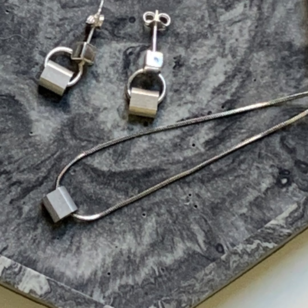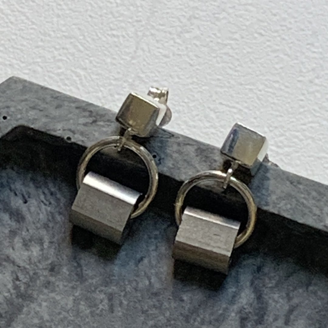 Industrial Silver and Aluminium Cube Earringsr