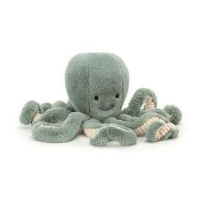 Jellycat Large Odyssey Octopus is such a lovely sea creature. He has lovely soft fur that is a beautiful sea green colour. His long tentacles are velvety soft with cream coloured cord underneath, resulting in the best cuddles ever. Jellycat large odyssey octopus would look great in a nursery because of his gorgeous shape and colour.