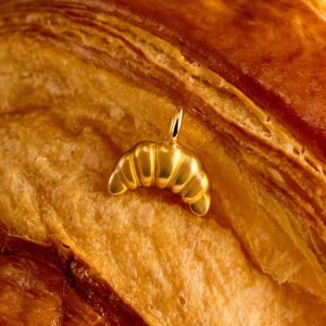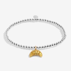 A beautifully beaded silver plated bracelet crowned with a mini croissant charm.