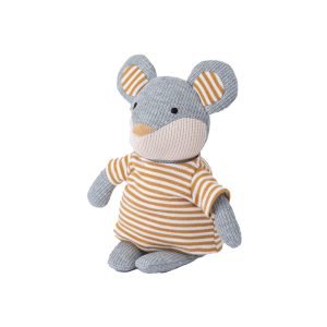 This adorable little knitted mouse is a charming companion for little ones! Crafted from soft, safe, and durable knitted fabric, this delightful mouse is dressed in a cute yellow striped jumper.