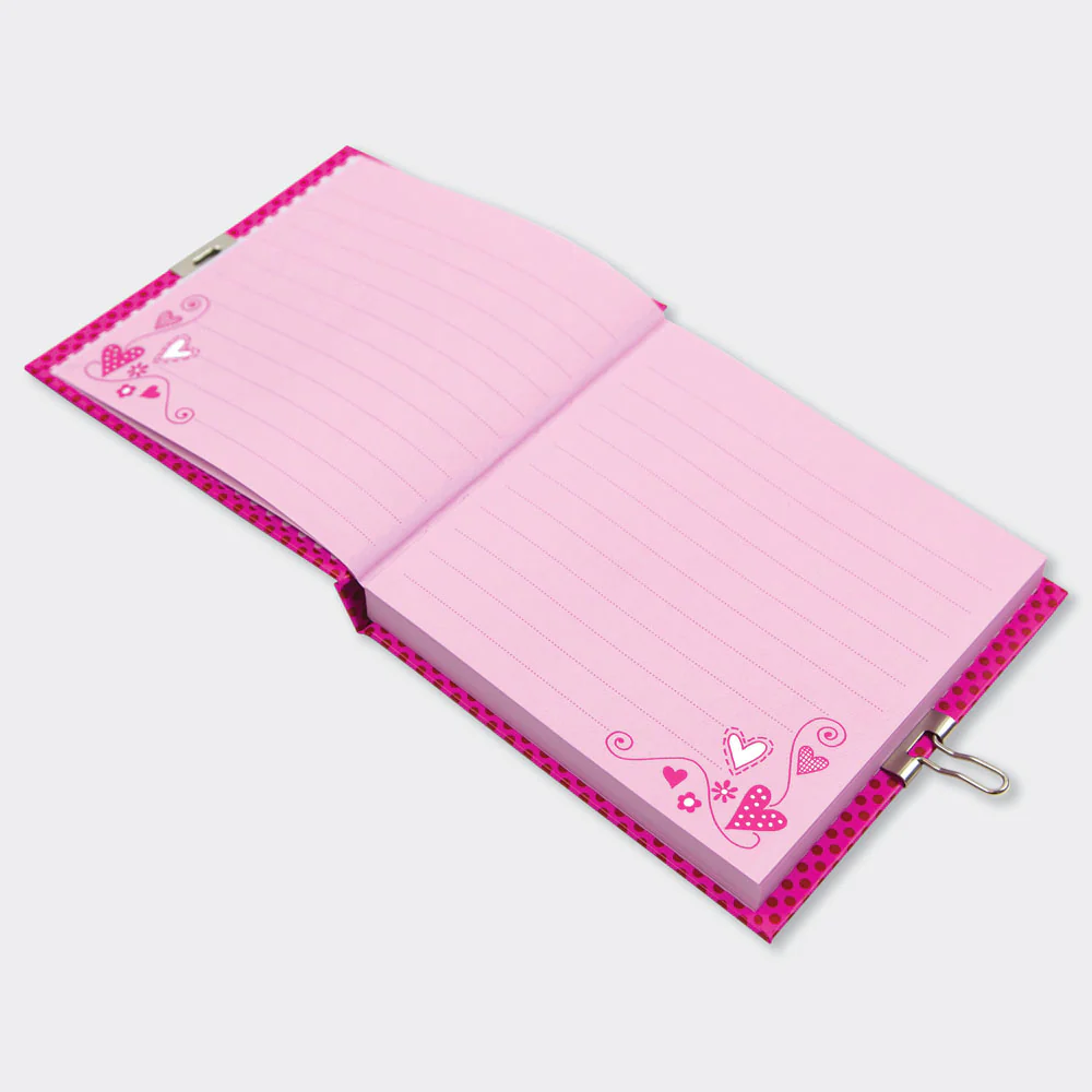 A hard backed children’s diary with ruled pages and a little padlock and key to keep everything top secret!
