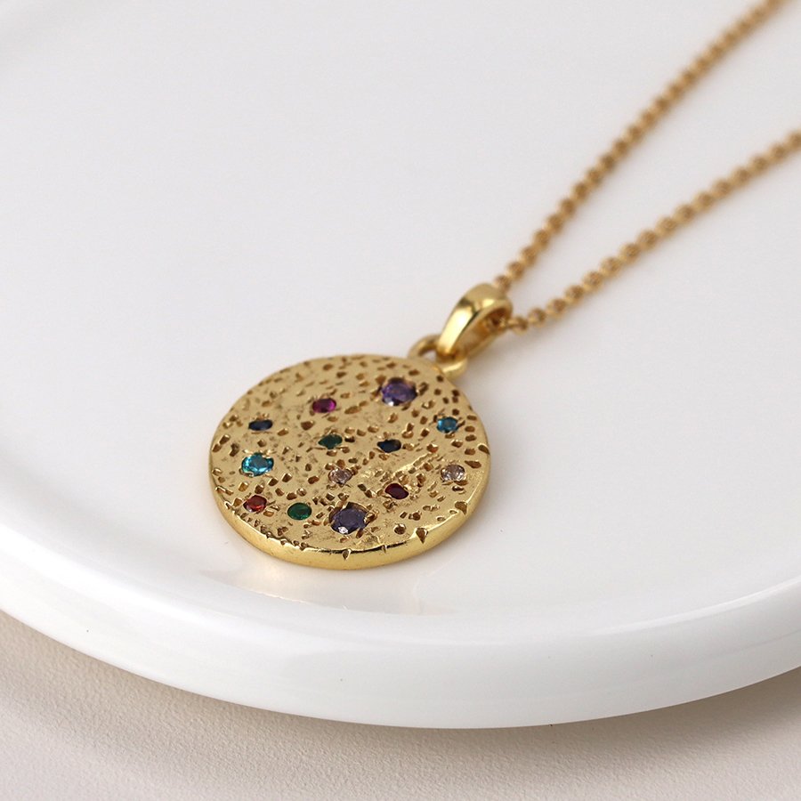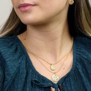 From PoM’s Aureus luxury jewellery collection, this 14 Carat gold plated necklace comes packaged in a silk pouch, making a perfect gift.