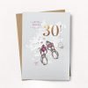 The Male Thirty Card is from the Party Age collection by Stephanie Davies. This greetings card features a collaged stack of presents, hand stamped with rose gold copper foil lettering. The caption reads ‘You’re 30!’.
