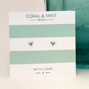 Mint Enamel Mini Heart Earrings