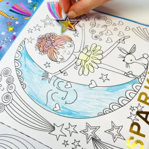 24 high quality pages of scenes and colouring pages and 8 pages of all different kinds of stickers embellished with hot foil.