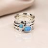 Sterling silver spinning ring with embossed edges, turquoise and pearl cabochons and moving copper and brass bands.