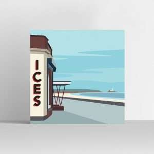 A contemporary print featuring the iconic Rendezvous cafe on Whitley Bay promenade