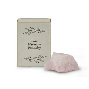 A matchbox with a rose quartz crystal for Love, harmony and positivity