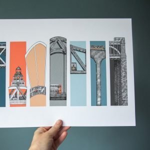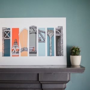 Featuring Seven Ways to Cross the Tyne, this colourful print features the world famous Tyne Bridge alongside the Millennium, Swing, King Edward VII, High Level, Queen Elizabeth II and Redheugh Bridge. Showing sections of each of the bridges this North East print is popular with anyone who loves Newcastle and Gateshead.
