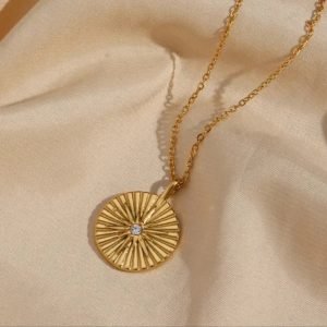 Designed to captivate, the Shatter Pendant offers a mesmerizing aesthetic made to last. The pendant features a distinctive shattered texture, symbolizing resilience and individuality, paired flawlessly with a high-quality gold plating that exudes luxury. Combined with a durable chain, this necklace promises unwavering quality and style that complements every neckline.