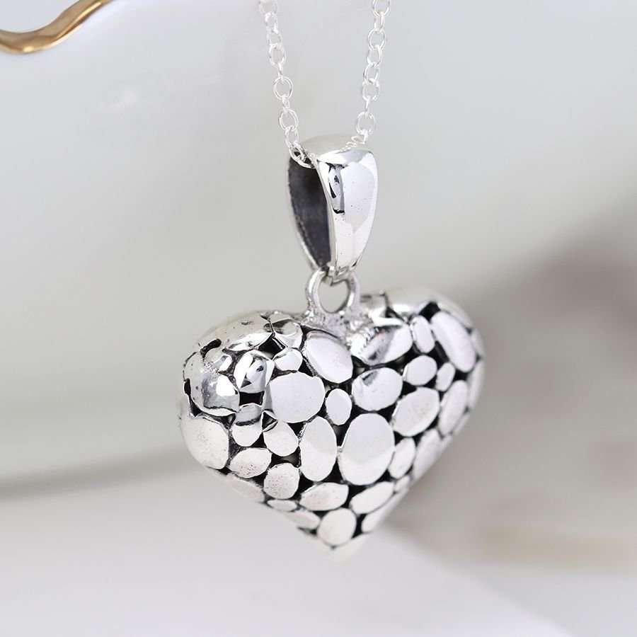 Silver Pebble Heart Pendant Necklace