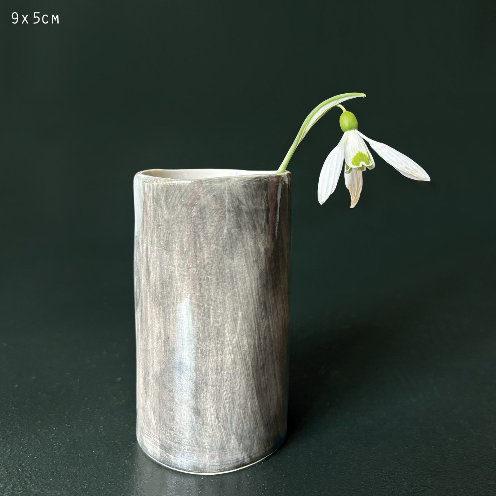 A lovely ceramic Small hand painted vase available in 2 different designs. Dimpled spots or black wash.