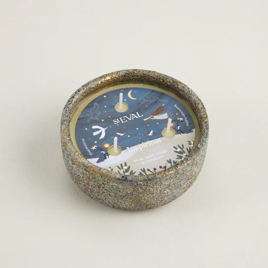 NEVER LEAVE A BURNING CANDLE UNATTENDED AND KEEP OUT OF REACH OF CHILDREN AND PETS. Always place candle on appropriate heat resistant base or holder on a flat stable surface, away from draughts and flammable objects.