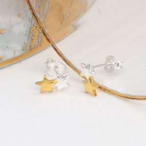 Sterling Silver and Gold Double Star Earrings