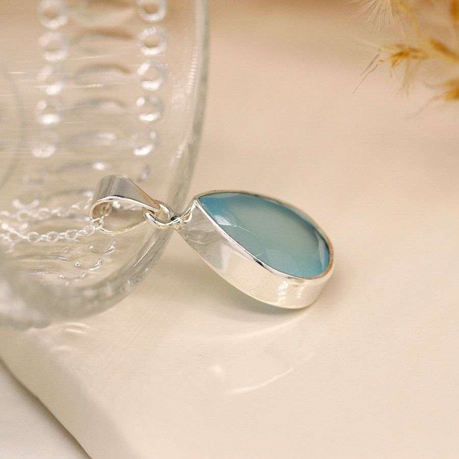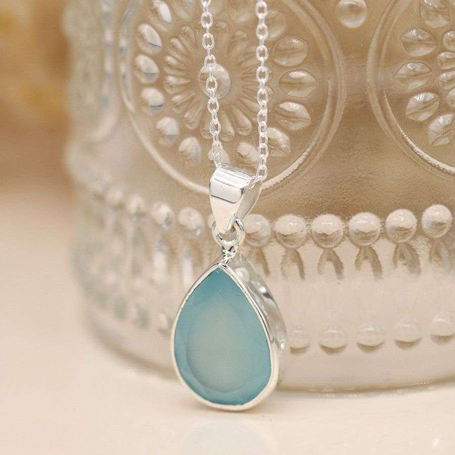 Sterling Silver Chalcedony Teardrop Necklace