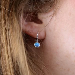 Sterling Silver Blue Opal Mini Hoop Earrings