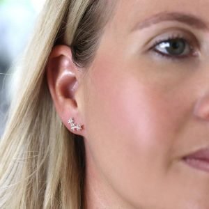 Contemporary sterling silver climber earrings with cubic zirconia crystal stars. Three little silver crystal stars in a line, these earrings look great worn alone or paired with a cuffs and other studs.