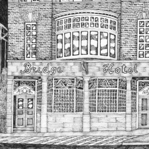 A limited edition, signed, unframed print from an original piece of pen and ink artwork by local artist Ben Holland aka Low Moon Over High Town.