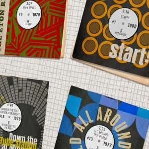 Each record cover has been re-imagined in an abstract modernist style with the details of each single release on the record’s inner label.