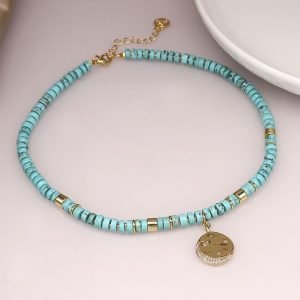 A stunning Turquoise Bead Necklace With Disc Charm from British based jewellery design company Peace of Mind.