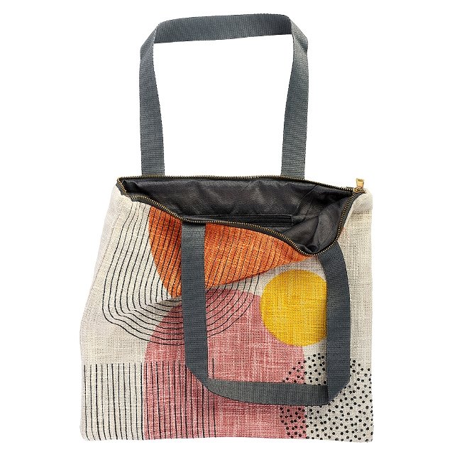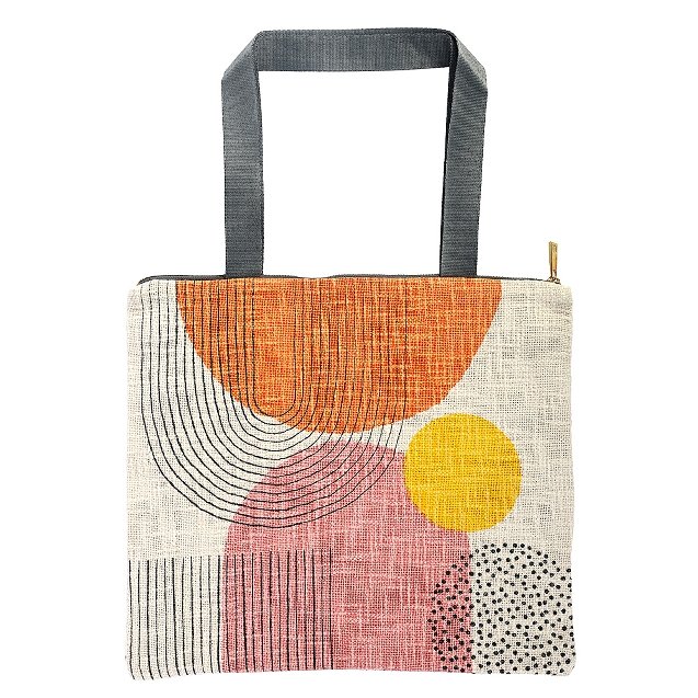 Elevate your everyday carry with this stylish and contemporary tote bag, designed to blend artistic flair with practical function. Crafted from textured fabric, it features a modern abstract pattern in warm, earthy tones accented by soft pink, sunny yellow, and fine graphic line details. The structured shape offers a roomy interior ideal for daily essentials, work items, or casual outings, while the secure zip-top closure keeps belongings protected. Finished with sturdy shoulder straps for comfortable wear, this tote is perfect for those who appreciate thoughtful design and effortless versatility.