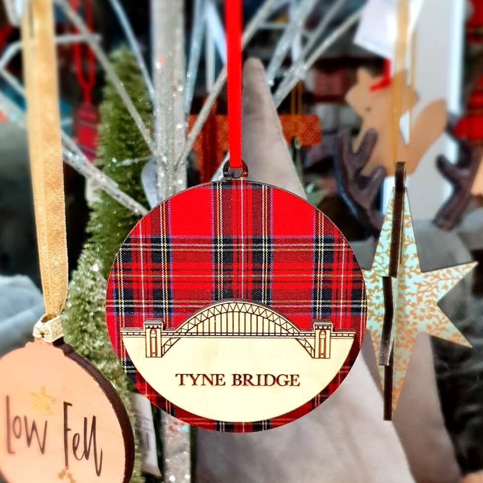 Tyne Bridge Wood and Tartan Hanging Decoration