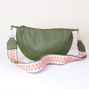Vegan Leather half moon bag in a variety of colours with woven zig-zag removable strap.