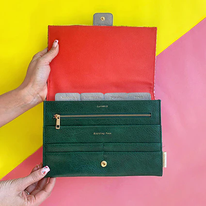 Travelling can be stressful, but our vegan friendly Zebra Travel Wallet is here to make your life easier. With a bold zebra faux-fur flap, this one’s for all the animal print lovers who want something a little different than the usual leopard print. Dark green leather dresses this travel wallet up as a little more grown-up, with a pop of coral pink on the inside. With little gold labels on each pocket, you’ll have no trouble finding your passport, boarding pass, or a little cash in a hurry.